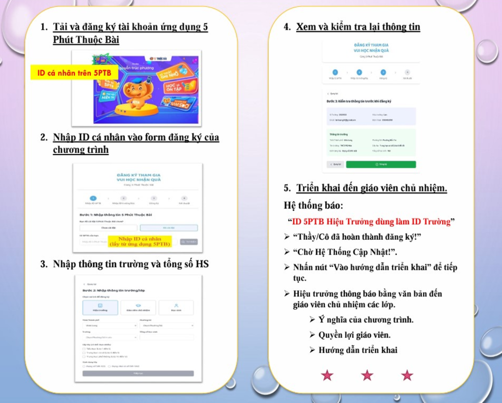 Xác nhận thông tin nhà trường và tổ chức triển khai chương trình đến giáo viên, học sinh.